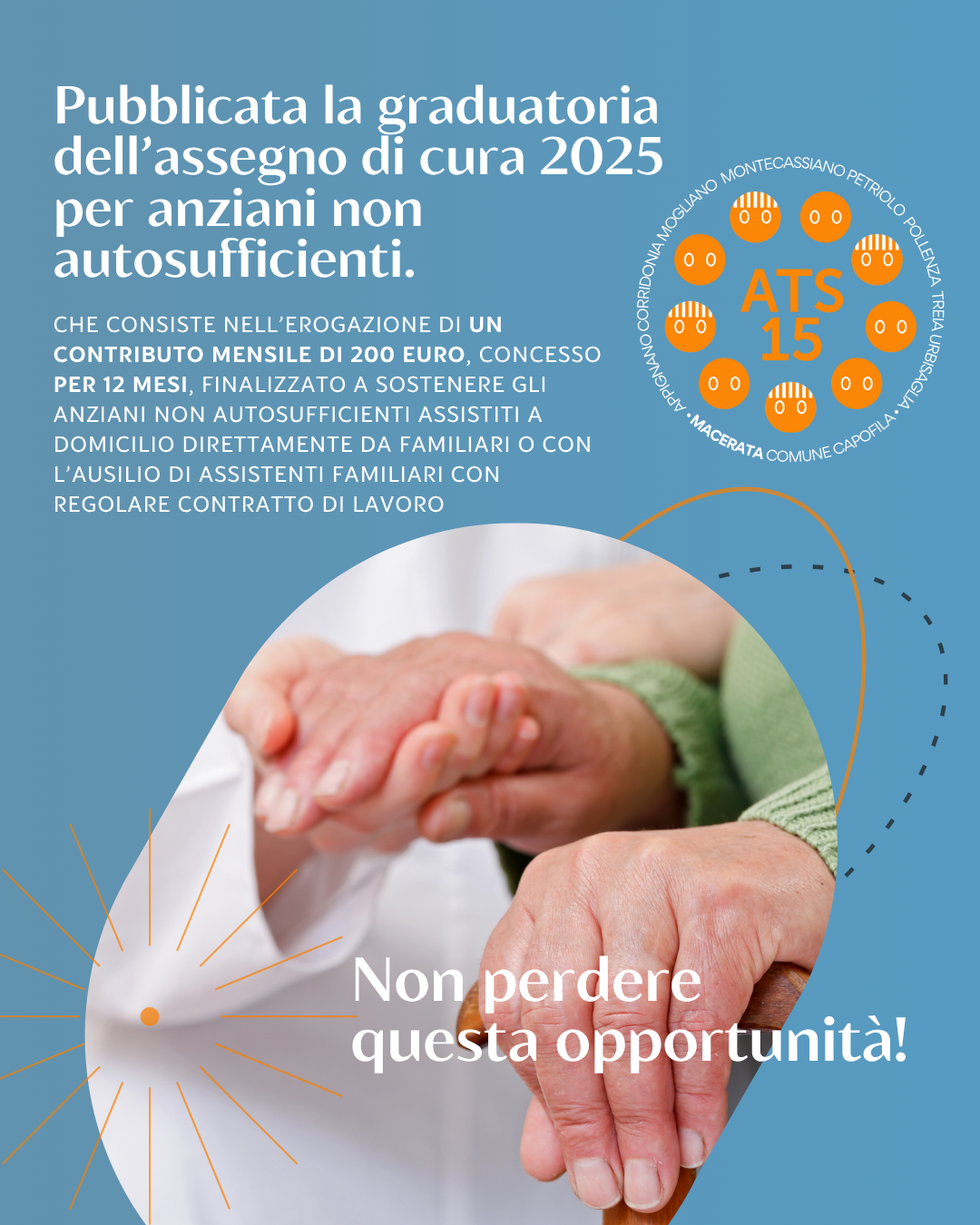 E' PUBBLICATA LA GRADUATORIA PER L'ASSEGNO DI CURA ANNO 2025,